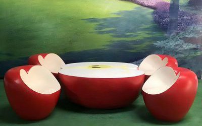 玻璃鋼水果雕塑以仿真、卡通為主,還包括果籃、座椅桌凳、卡通房屋等造型樣式,還可以結合燈光實現發光效果,主要用于庭院園林、采摘園、主要產銷地、游樂場、兒童樂園等地方做景觀或美陳雕塑。